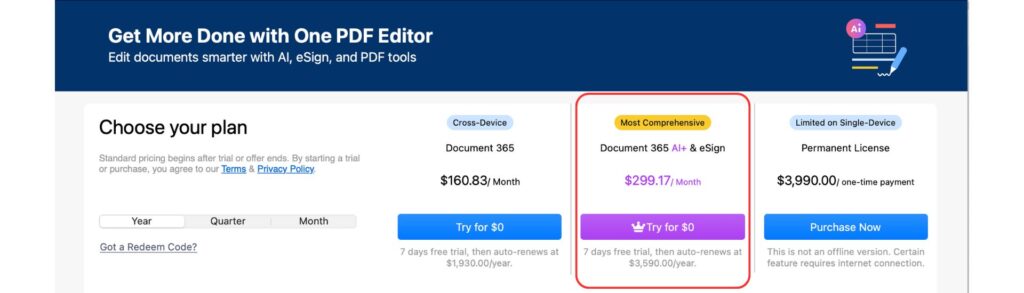 Start your Document 365 AI+&eSign trial in KDAN PDF Reader.