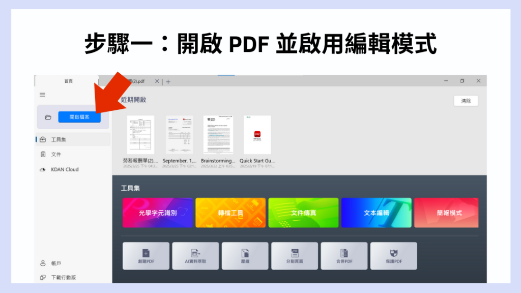 除了直接在 PDF 上輸入文字,KDAN PDF Reader 還提供多種編輯工具,讓你能更靈活、高效地處理文件!